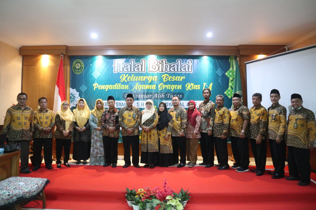 Jumat (20/05/2022) Pengadilan Agama Sragen Kelas IA mengadakan halal bihalal di ikuti seluruh pegawai. Pada acara tersebut di rangkai pengantar alih tugas Akbar Saiful, S.H dan Dyan Al Arif. purna tugas Muhammad Abdus Shobur, S.H. Akbar saiful beralih tugas menjadi Sekertaris di Pengadilan Agama Sukoharjo dan Dyan Al Arif beralih tugas menjadi Kepala Sub Bagian APEP IT di Pengadilan Agama Rembang.