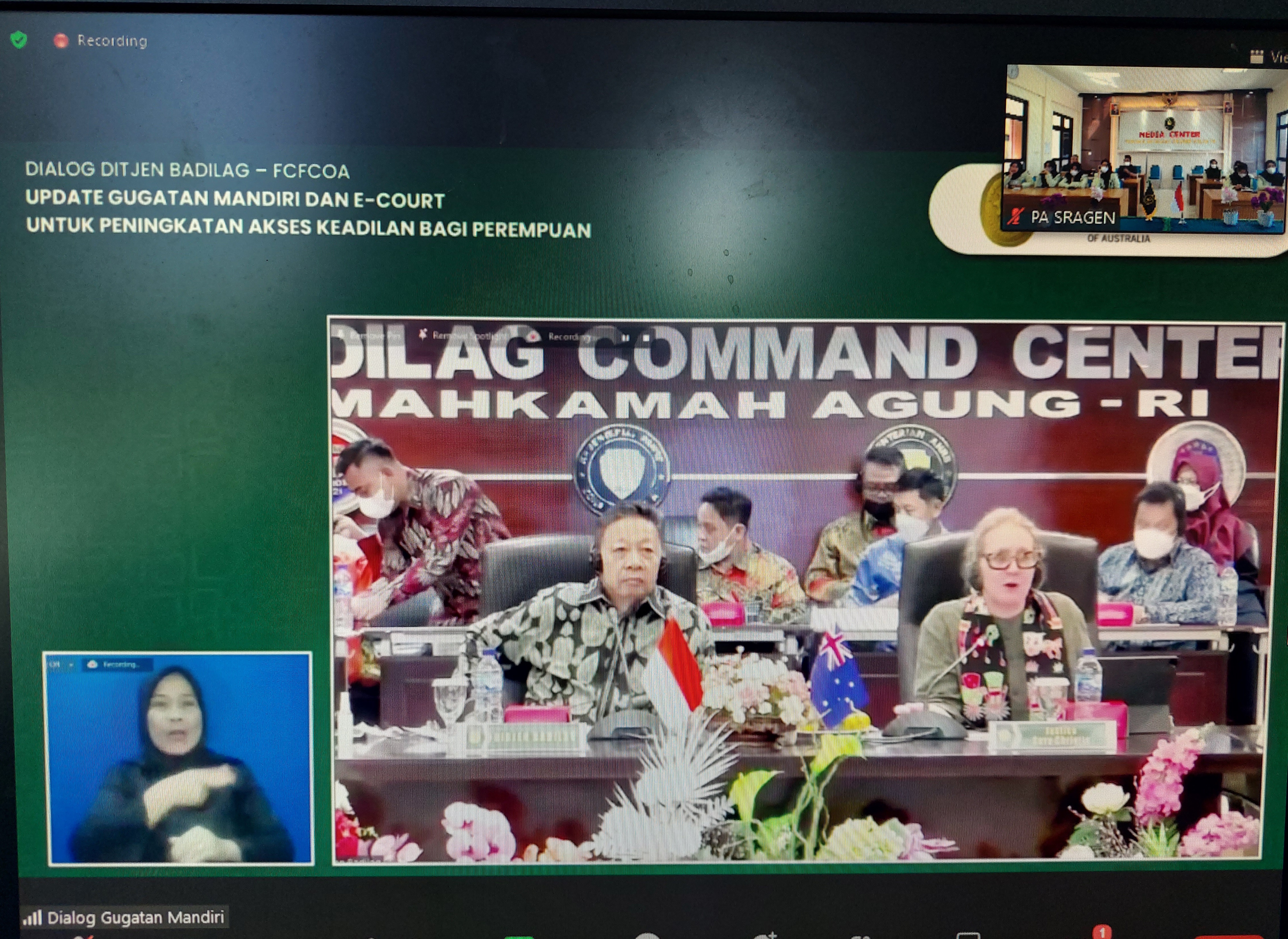 Dalam rangka pelaksanaan kegiataan berdasarkan Nota Kesepahaman antara Mahkamah Agung Republik Indonesia (MARI) dengan Federal Circuit & Family Court of Australia (FCFCOA), Direktorat Jenderal Badan Peradilan Agama bekerjasama dengan Family Court of Australia yang di fasilitas oleh Australia-Indonesia Partnership for Justice 2 (AIPJ2) akan menyelenggarakan webinar pada tanggal 26 dan 29 Juli 2022 secara daring. Webinar terdiri dari Webinar Gugatan Mandiri dan Peningkatan Akses Keadilan Bagi Perempuan, dan Webinar Client Oriented Website.