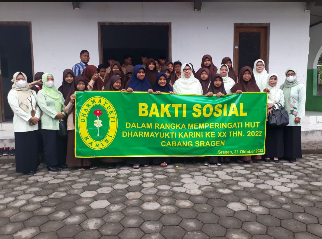 Sragen, Jawa Tengah – Pada Jumat ( 21/10/2022) masih dalam suasana HUT DHARMAYUKTI KARINI XX THN 2022 Cabang Sragen, Dharmayukti Karini cabang Sragen yang terdiri dari Anggaota Dharmayukti Pengadilan Agama Sragen dan Anggota Dharmayukti Pengadilan Negeri Sragen melaksanakan kegiatan Bakti Sosial bertempat di Panti Asuhan Kyai Ageng Pandanaran Sragen, Kedung Dowo, Somomorodukuh, Kec. Plupuh, Kabupaten Sragen, Jawa Tengah. Pada acara tersesebut dihadiri Sri Nuryani, S.H. Selaku ketua Dharmayukti Karini Cabang Sragen.