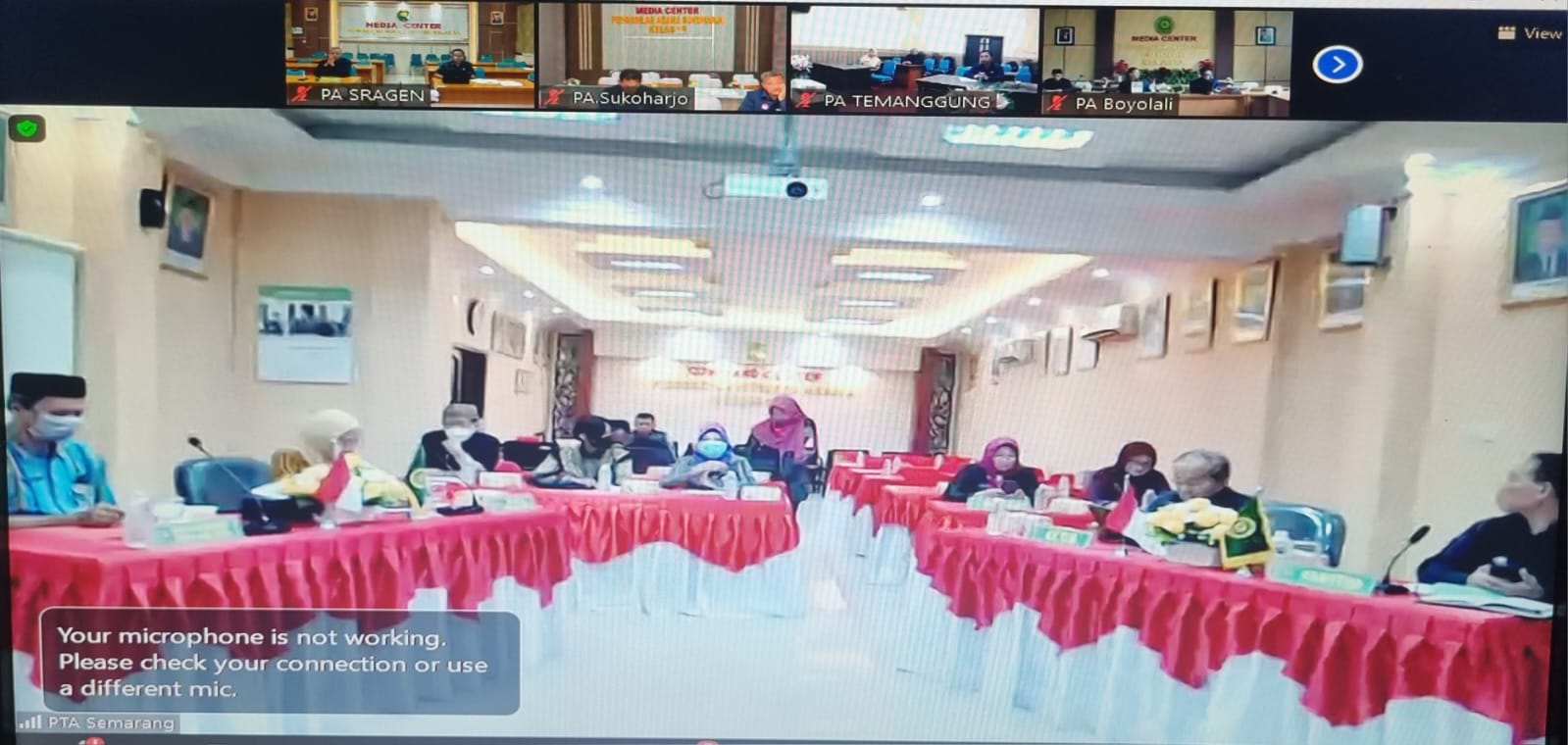 Selasa, 6 Juni 2023 Pengadilan Agama Sragen mengikuti kegiatan zoom meeting perihal Monitoring dan Evaluasi Rencana Kerja secara Hybrid yang mempunyai Ruang lingkup dan Rencana Kerja (RK) yang termuat dalam Nota Kesepahaman (NK) melalui implementasi sharing data Aplikasi Jamu kuat. Acara tersebut diselenggarakan oleh Pengadilan Tinggi Agama Semarang. Dihadiri Ketua PTA Semarang, Panitera PTA Semarang, Dinas Kesehatan Provinsi Jawa Tengah dan Dinas Perempuan Anak Jawa Tengah serta Ketua, Wakil Ketua dan Panitera Satuan Kerja di bawah naungan Pengadilan Tinggi Agama Semarang.