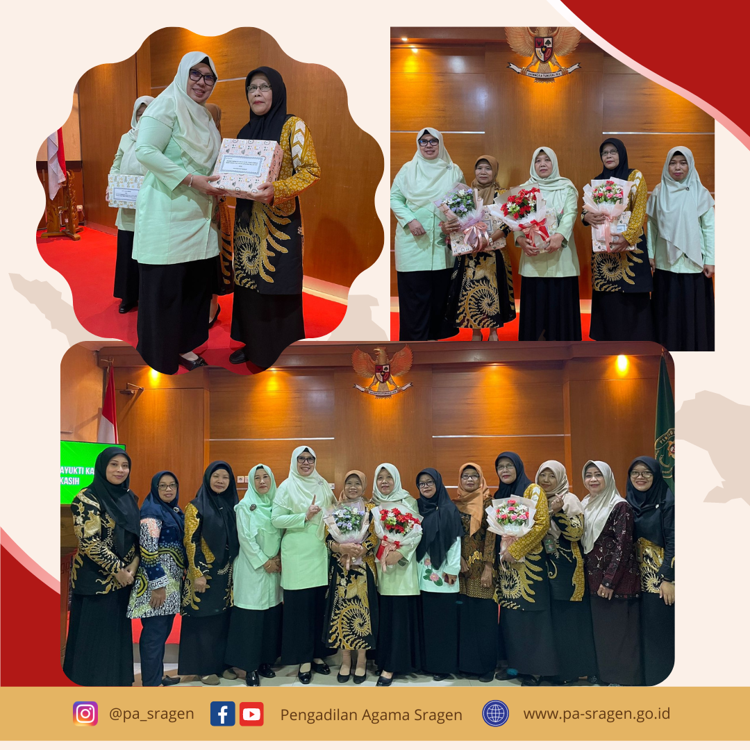 Acara Pertemuan Rutin Dharmayukti Karini Cabang Sragen Hari Jumat, 25 Agustus 2023 di Ruang Sidang Pengadilan Agama Sragen Kelas IA . Di hadiri Ibu Sri Nuryani Sutiiyono, S.H., Ketua Dharmayukti Karini Cabang Sragen, beserta anggota Dharmayukti Pengadilan Agama dan Pengadilan Agama Negeri Sragen.