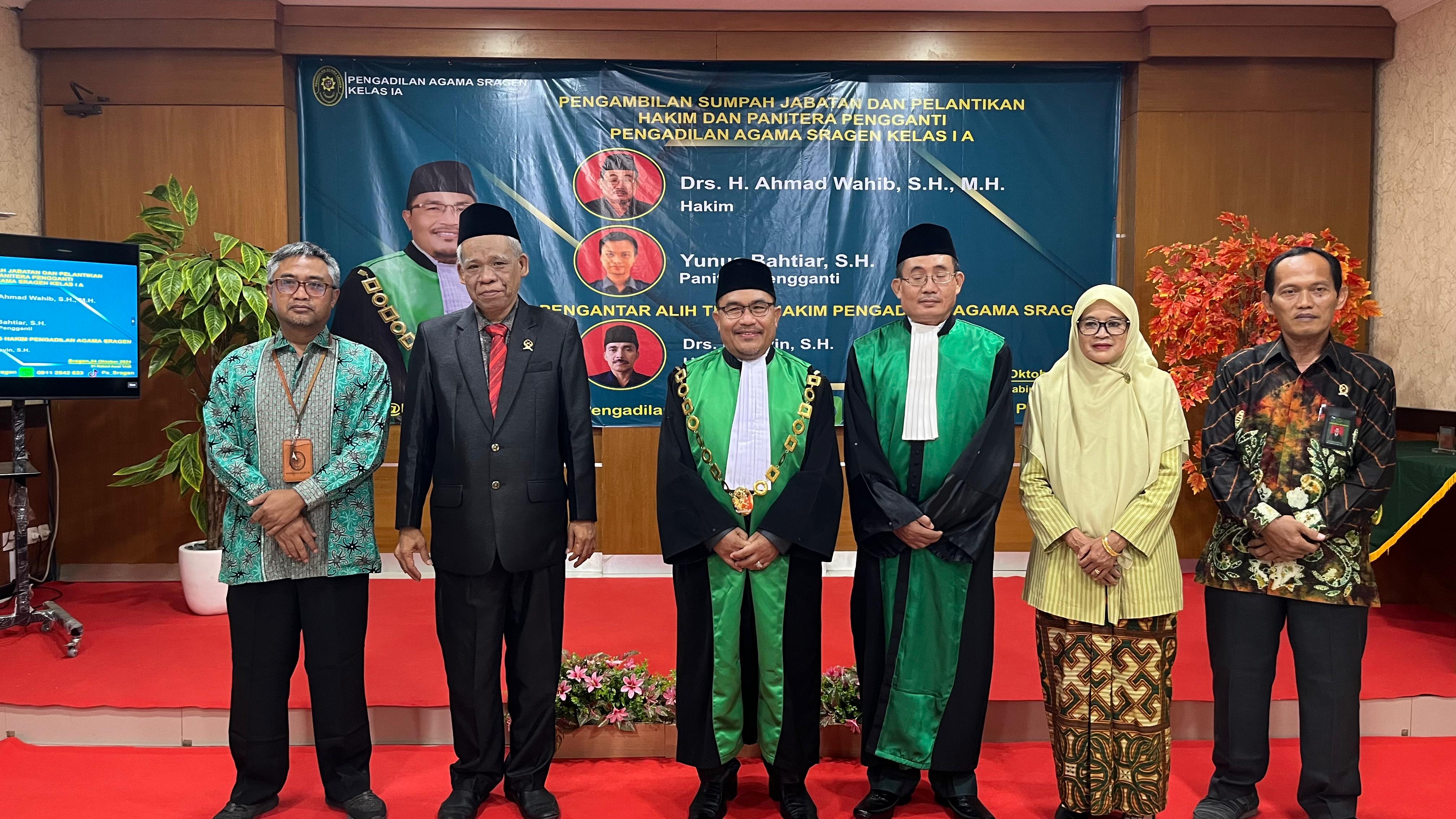 Setelah pelantikan, dilakukan pengambilan sumpah jabatan yang dipimpin oleh Ketua Pengadilan Agama Sragen dan disaksikan oleh para saksi serta rohaniwan, diikuti dengan penandatanganan Berita Acara Sumpah secara elektronik. Para pejabat yang dilantik juga menandatangani Pakta Integritas secara elektronik sebagai komitmen terhadap tugas dan tanggung jawab yang diemban. Ketua Pengadilan Agama Sragen, Bapak Drs. H. Palatua, S.H. M.H.I dalam sambutannya mengatakan bahwa Selamat Datang dan Bergabung Drs. Ahmad Wahib, S.H.M.H, Drs. Muhtar, M.H. dan Yunus Bahtiar, S.H. di Pengadilan Agama Sragen, Semoga dapat memberi kontribusi sehingga meningkat kinerja dari kantor.
