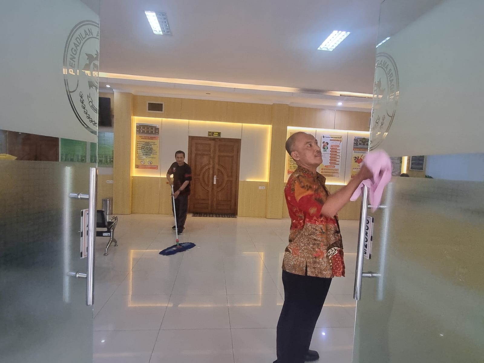Jumat, 11 April 2025 Seluruh Pegawai Pengadilan Agama Sragen dalam agenda jumat bersih. Kerja bakti ini memang dijadwalkan tiap dua pekan sekali pada hari jumat. Kerja bakti bersama ini dilakukan dalam rangka meningkatkan kebersihan lingkungan Kantor Pengadilan Agama Sragen. Dalam kerja bakti ini semua sudut kantor dibersihkan dan dirapikan terutama titik-titik yang menjadi sorotan seperti Resepsionis dan Selasar Utara, Taman Tengah dan Selasar Selatan, Media Center, Ruang Tunggu Mediasi+PTSP, Ruang Luar dan Ruang Tunggu Dalam. Dalam hal ini, pimpinan Pengadilan Agama Sragen mendukung penuh kegiatan ini. Diharapkan kegiatan ini akan terus rutin dilakukan untuk kedepannya.
