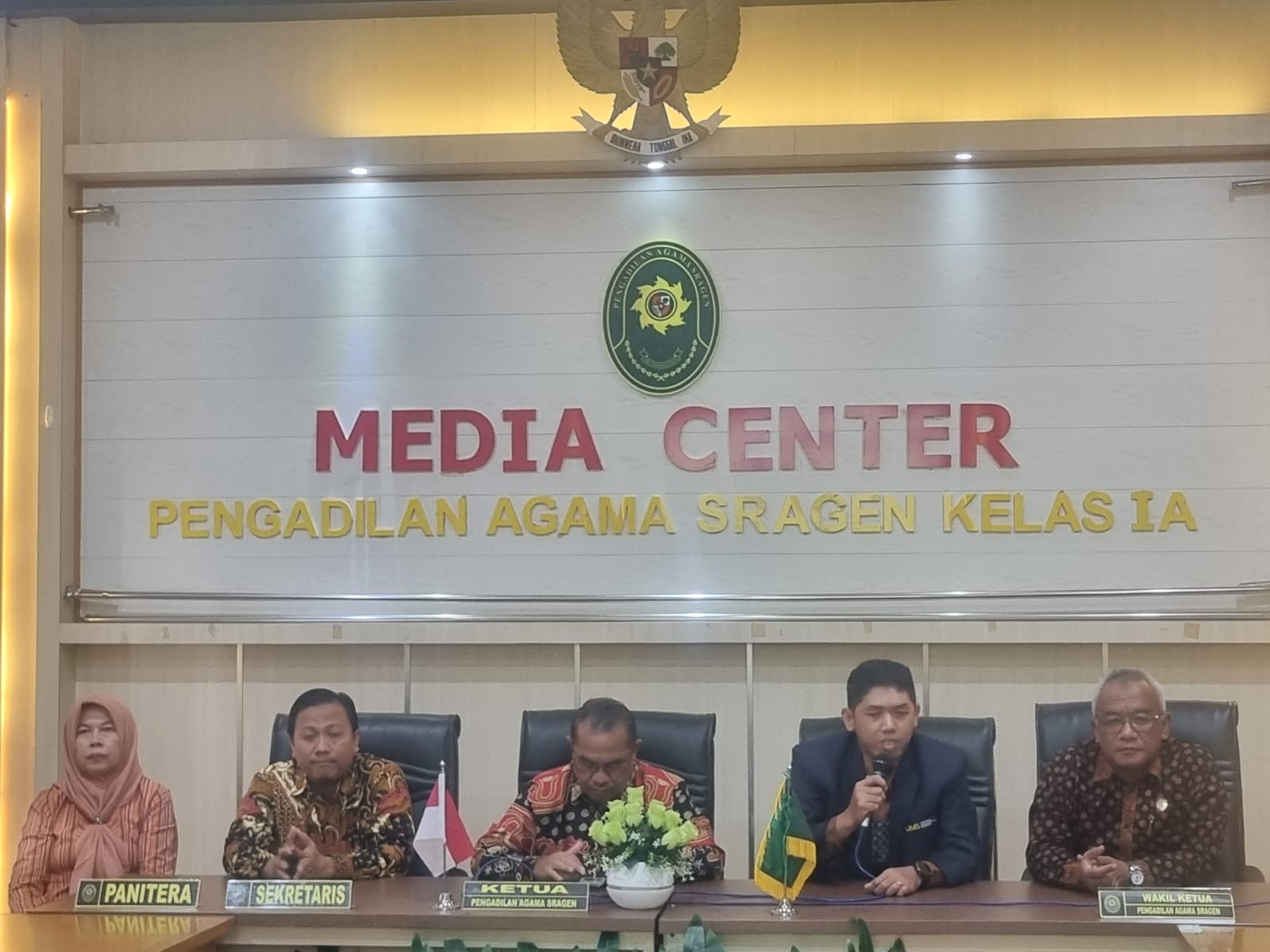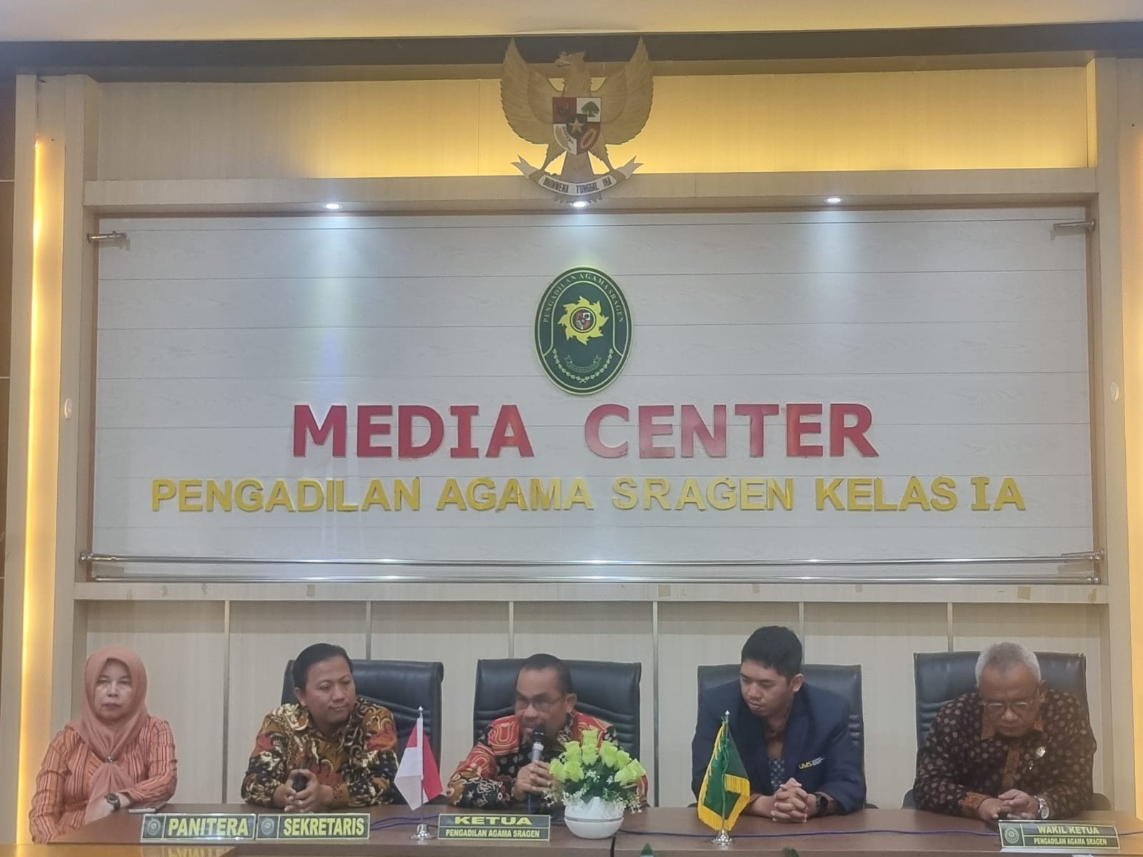 Senin, 01 September 2025. Bertempat di Ruang Media Center Pengadilan Agama Sragen, dilaksanakan penerimaan 11 orang Mahasiswa Universitas Muhammadiyah Surakarta Fakultas Ilmu Agama Islam Prodi Hukum Ekonomi Syariah yang akan memulai kegiatan Magang di Pengadilan Agama Sragen selama 1 (satu) bulan kedepan.Kegiatan penerimaan ini dihadiri langsung oleh Ketua Pengadilan Agama Sragen Drs. Palatua, S.H., M.H.I. Wakil Ketua Pengadilan Agama Sragen H. Abdul Rouf, S.Ag., M.H. Panitera Pengadilan Agama Sragen Suminah, S.H., M.H. Sekretaris Pengadilan Agama Sragen Ichwan Firmansyah Assidiqi, S.Ag serta Dosen Pembimbing Lapangan Universitas Muhammadiyah Surakarta Dr. Triyono Adi Saputro, S.H.M.H. dan Hakim Pembimbing PA Sragen, Dra. Muhlisoh, M.H.