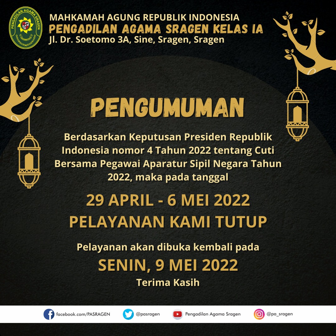 PENGUMUMAN LIBUR CUTI LEBARAN